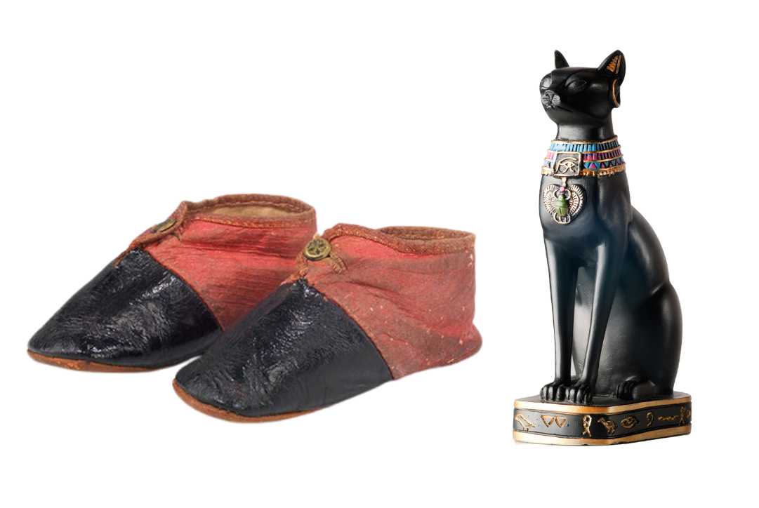 Both an ancient Egyptian cat statue and a pair of shoes from the 1800s are items made by people. So, even though they are very different, they are both artifacts! Excavated objects made up of natural remains, as opposed to objects of human workmanship, are considered ecofacts.
