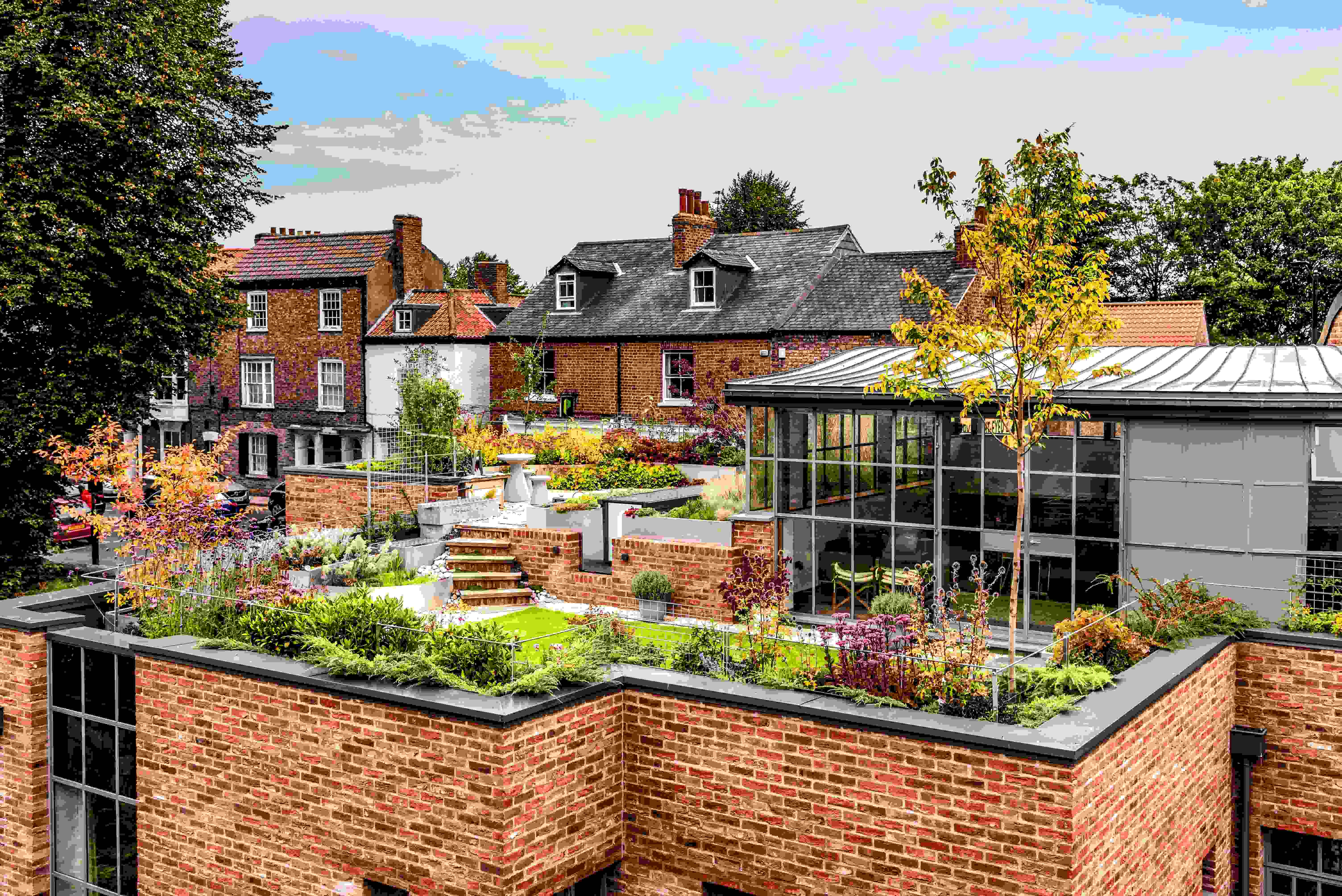 Your mission: Design a rooftop greenhouse model that grows food and provides a relaxing space for residents.