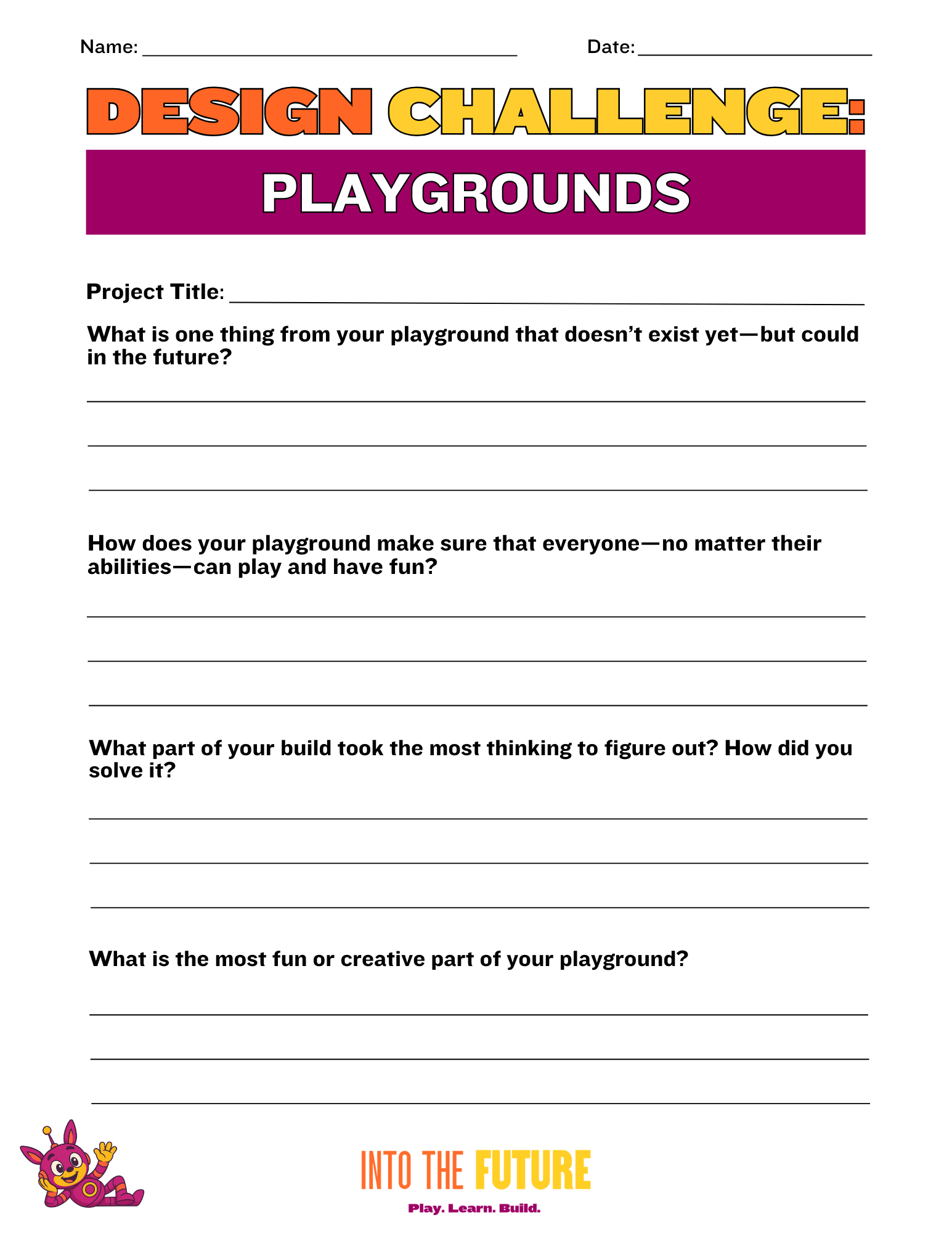 Students will design and build a model of a future playground that is imaginative, inclusive, and environmentally responsive.
